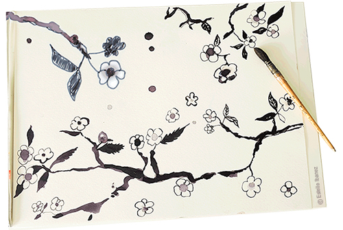 Esquisse florale à l'encre.